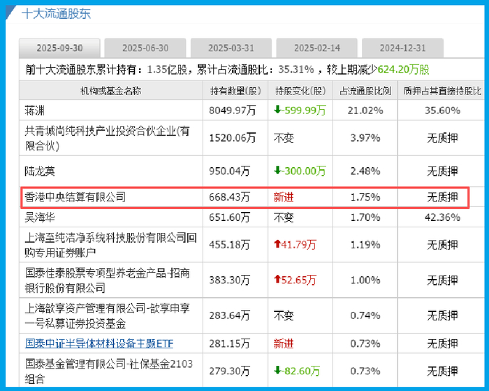 然而,就在同一页,“股东名录”栏一个名字引人注目:香港中央结算有限公司(北向资金)已成为公司第四大流通股东。