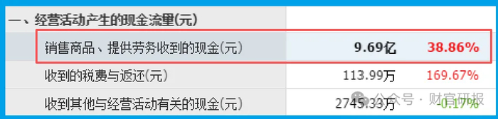 但紧接着,我们发现了第一个矛盾点:前三季度公司销售商品收到的现金高达9.69亿元,同比增长38.86%,且与营收规模相当。