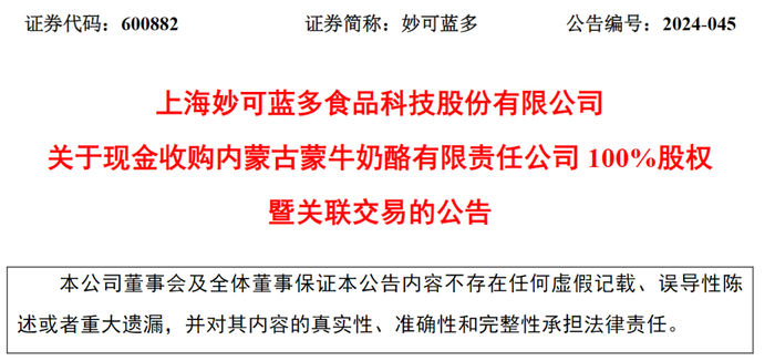 为其增长装上“加速器”的,是与乳业巨头蒙牛的深度整合。2024年6月,妙可蓝多完成了对蒙牛奶酪业务的收购。这不仅仅是一笔资产并购,更是一次战略重构。
