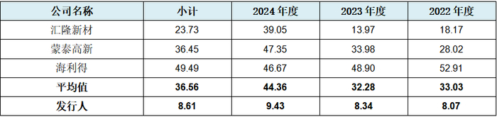 从上表可见,发行人产品销售单价分别为2.12万元、2.13万元、2.08万元,不但为可比企业中的最高者,也分别为可比公司平均值1.285万元、1.2175万元、1.20万元的1.65倍、1.75倍、2.08倍,尤其是2024年度为汇隆新材的两倍之多。而销售单价直接与营业收入及毛利率相关,发行人的高销售单价可能直接推动了下文所述的高毛利率、净利润额及净利率。
