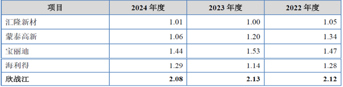 对此发行人解释为:“公司应收账款周转率整体保持平稳,低于同行业可比公司平均水平,与蒙泰高新较为接近,主要系公司下游汽车内饰行业客户占比较大,汽车产业链账期整体相对较长,因此导致公司应收账款周转率低于可比公司平均水平。”