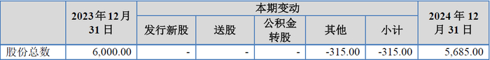 另一方面,在发行人一路高额猛进的盈利之下,报告期内发行人股本数发生了减少的非同寻常变化,发行人披露的2024年度的股本变动情况,如下表所示: