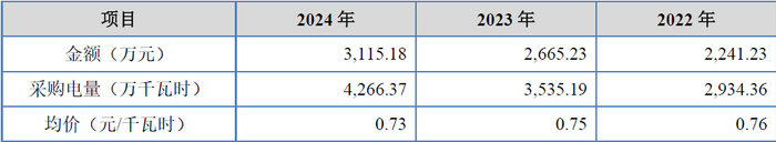 关于发行人盈利能力可能失真的问题,我们也可以从制造费用数据端加以分析。招股书中披露的发行人主要采购的能源为电力,其电力采购情况,如下表所示: