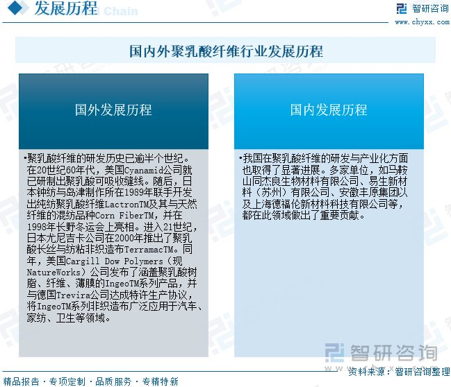 注:本文节选出自智研咨询发布的《研判2025!中国聚乳酸纤维行业工艺流程、发展历程、市场规模及未来前景展望:聚乳酸纤维产业规模突破45亿元,未来将向高性能、多元化应用方向拓展[图]》行业分析文章,如需获取行业文章全部内容,可进入智研咨询官网搜索查看。