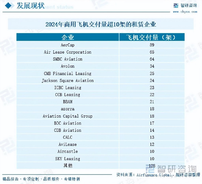 注:本文节选出自智研咨询发布的《研判2025!全球及中国飞机租赁行业商业模式、飞机数量、订单规模及未来趋势分析:爱尔兰、中国为主要市场,行业集中度较高[图]》行业分析文章,如需获取行业文章全部内容,可进入智研咨询官网搜索查看。
