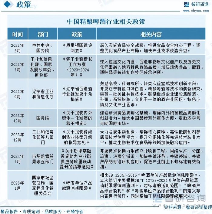 注:本文节选出自智研咨询发布的《研判2025!中国精酿啤酒行业发展历程、消费量、市场规模、重点品牌及未来前景展望:消费升级驱动产品创新,精酿啤酒市场规模突破千亿元[图]》行业分析文章,如需获取行业文章全部内容,可进入智研咨询官网搜索查看。