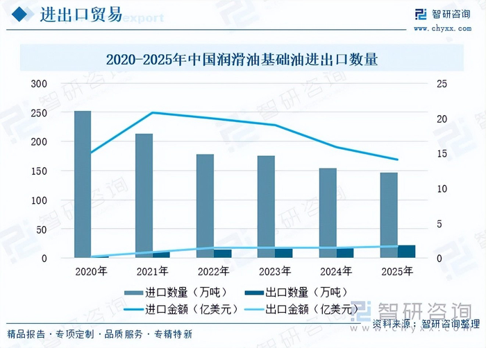 注:本文节选出自智研咨询发布的《研判2026!中国润滑油基础油行业产业链、产能产量、进出口贸易、企业格局及发展趋势分析:国产化进程加快,市场仍供不应求[图]》行业分析文章,如需获取行业文章全部内容,可进入智研咨询官网搜索查看。