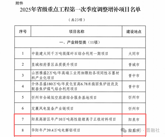 据山西省发改委公示,“华阳年产39.4万吨电解铝项目”于2025年5月23日被列为2025年省级重点工程。