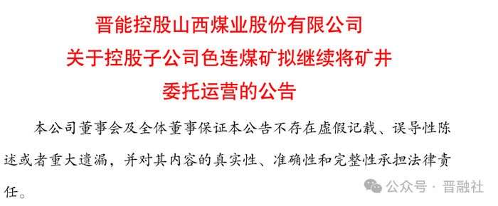 本次续签的委托公告显示,矿业公司继续委托汇永集团运营色连一号矿井,合作期限初步定为三年。