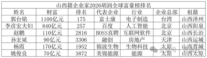 近年来,行业加速洗牌,新兴产业领域企业家迅速崛起。此次入围胡润全球富豪榜的山西籍企业家中,亦有近半从事于生物科技、人工智能等战略新兴产业。
