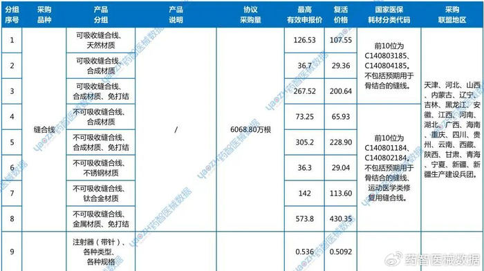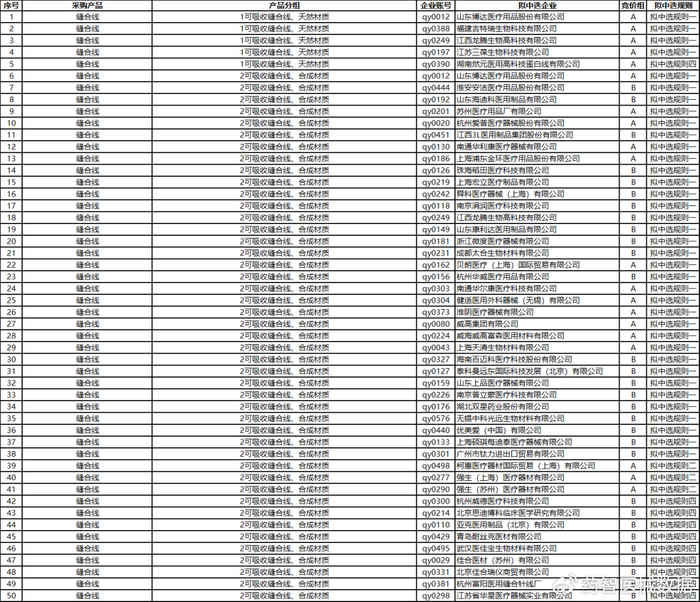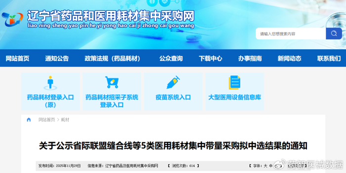 近日,辽宁省药品和医用耗材集中采购网发布《关于公示省际联盟缝合线等5类医用耗材集中带量采购拟中选结果的通知》(以下简称:《通知》),5类耗材拟中选结果正式出炉。(文末点击阅读原文了解详情)