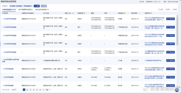 泵用输液器在耗材中标分析系统共收录到3175条信息,其价格由于产品类别、材质、规格、型号等不同产生较大差异,最低价在0.29元,最高价则在960元。差价幅度较大。