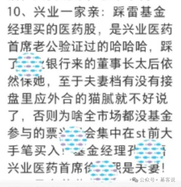 再比如爆料中提到,兴银有基金经理管理所有基金踩雷普利制药,现已退市(普利退),踩雷后前董事长依旧保她。