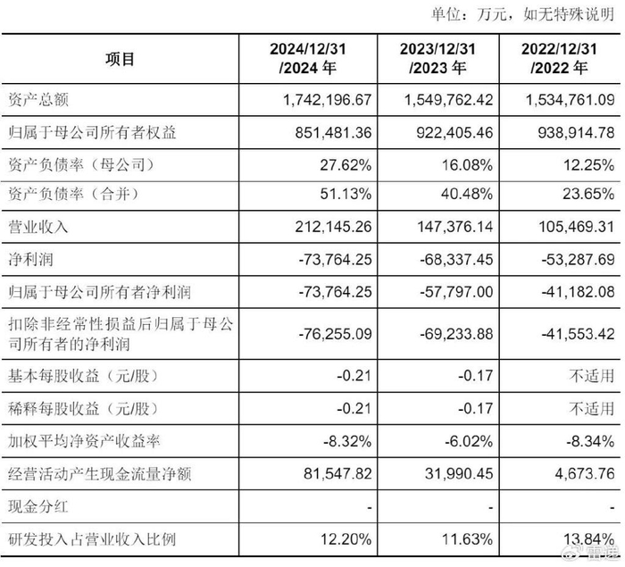 招股书显示,西安奕材2022年、2023年、2024年营收10.55亿元、14.74亿元、21.21亿元;净利分别为-5.33亿元、-6.83亿元、-7.38亿元;扣非后净利分别为-4.16亿元、-6.92亿元、-7.63亿元。