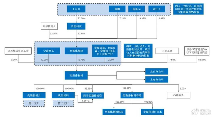 2022年7月,王东升通过货币增资完成对奕斯伟集团的间接持股,夯实了上述共同控制结构。截至本招股说明书签署日,四人直接和间接控制奕斯伟材料控股股东奕斯伟集团合计67.92%的股权。