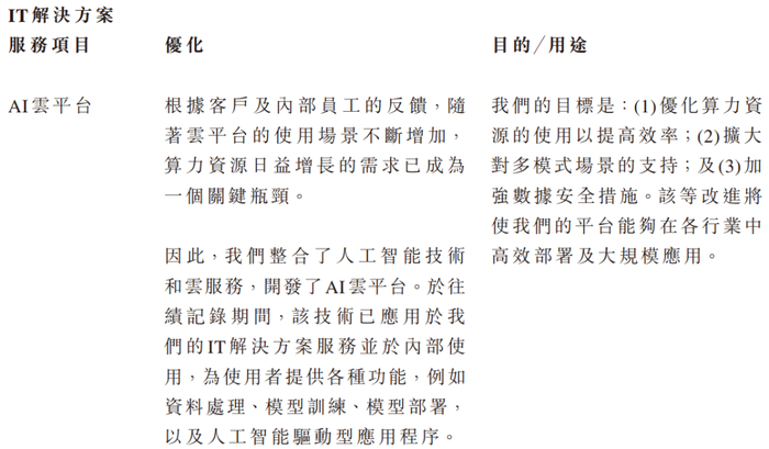 来源:招股书由于(i)教育行业对IT解决方案服务的持续需求;及(ii)人工智能技术迭代下教育与科技的融合效应,公司自2023年起战略性布局数字化教育IT解决方案服务业务。未来拟持续深化人工智能技术与现有教育科技解决方案的深度融合,以强化项目技术。