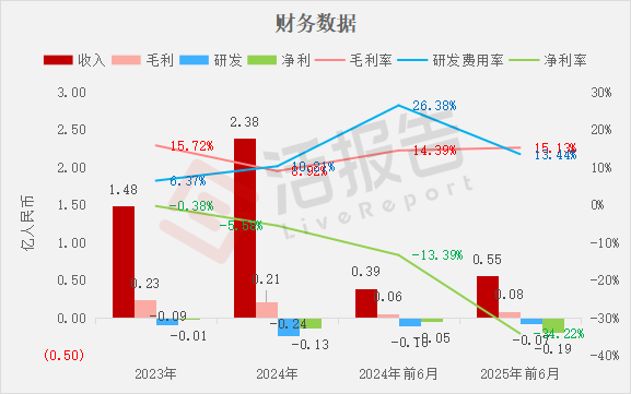 净利分别约为人民币-0.01亿、-0.13亿、-0.05亿、-0.19亿,2025年前6月同比+263.96%;