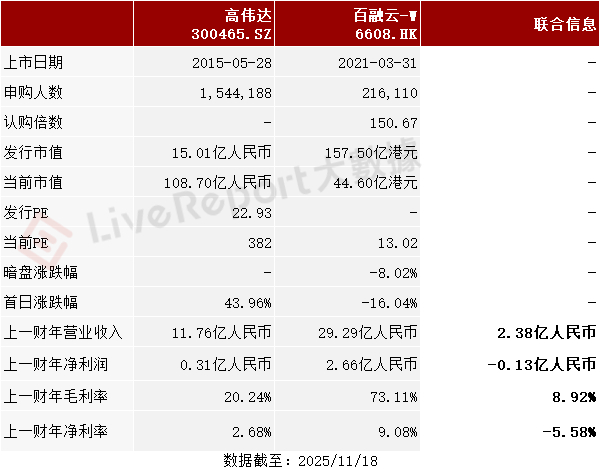 同行业IPO可比公司:高伟达(300465.SZ)、百融云-W(6608.HK)