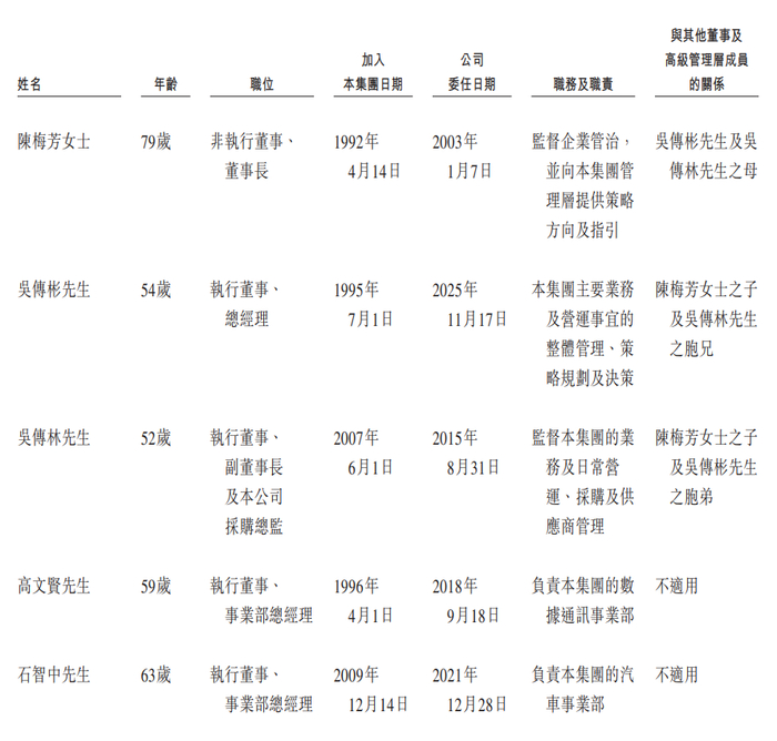 董事会由十一名董事组成,包括五名执行董事、两名非执行董事及四名独立非执行董事。其中陈梅芳为董事长及非执行董事,吴传彬为执行董事及总经理,主要负责业务及营运事宜的整体管理、策略规划及决策。