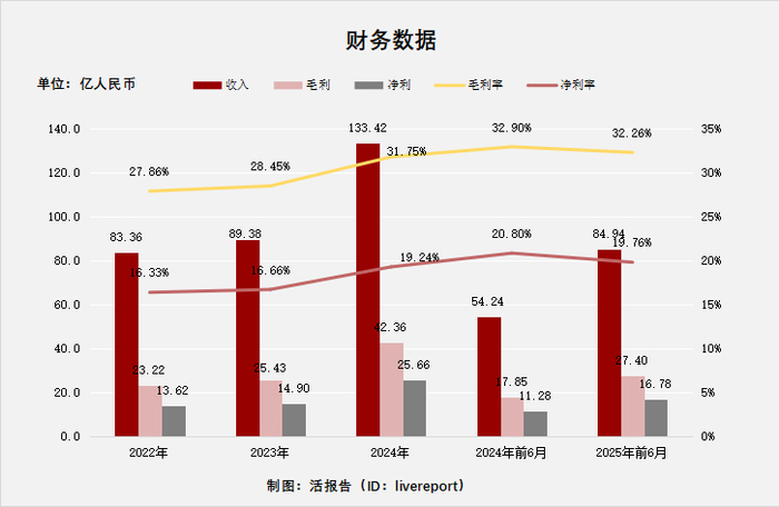 收入分别约为人民币83.36亿元、89.38亿元、133.42亿元、54.24亿元及84.94亿元,年复合增长率为26.51%;