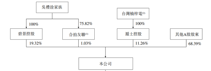 截至最后实际可行日期,公司由(i)碧景控股持有19.32%,及(ii)合拍友联持有1.03%(两者均由吴礼淦家族最终控制),合计占公司股东会投票权总数的20.35%。
