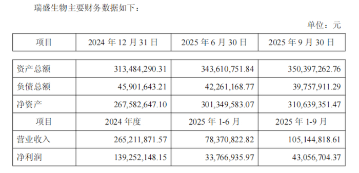 对于投资者而言,警报并未解除。海利生物虽然通过“债转股”暂时平账,但瑞盛生物的经营基本面并未改善。2025年三季报显示,公司营收同比下滑14.15%至1.5亿元,归母净利润仅2033万元。