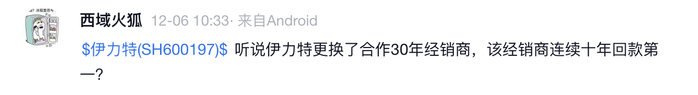 疆外业务收入也基本腰斩。2025年前三季报显示,公司疆外地区实现营收2亿元,同比缩水约5成;疆内业务收入10.7亿元,同比下滑12.7%。投资者平台雪球上,有投资者传言,伊力特更换了合作30年的经销商。