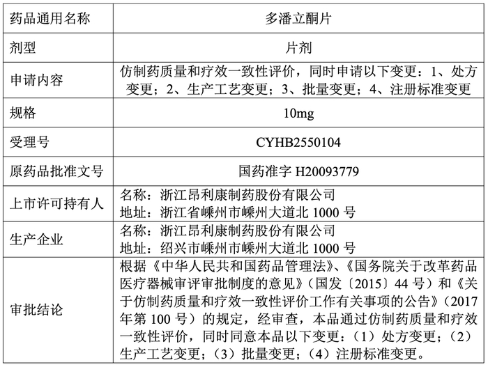 昂利康:多潘立酮片药品补充申请获批