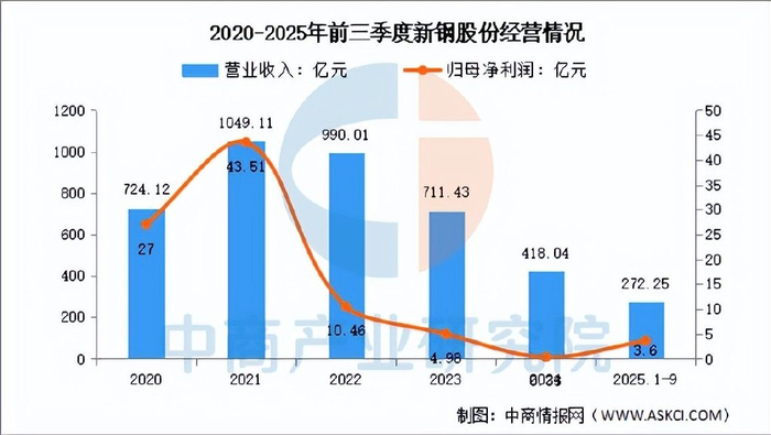 2025年前三季度实现营业收入272.25亿元,同比下降12.68%;实现归母净利润3.6亿元,同比增长162.18%。