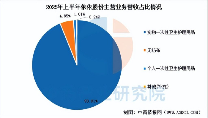 2025年前三季度,依依股份实现营业总收入13.06亿元,同比下降0.72%,归母净利润1.57亿元,同比增长3.82%。上半年,公司宠物一次性卫生护理用品收入8.343亿元,占比93.91%。