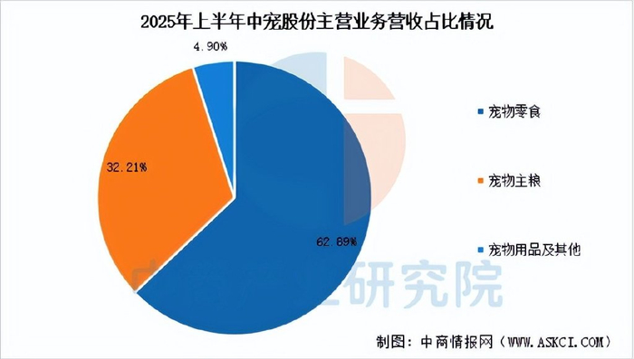 2025年前三季度,中宠股份实现营业总收入38.6亿元,同比增长21.05%,归母净利润3.33亿元,同比增长18.21%。上半年,公司宠物零食收入15.29亿元,占比62.89%,宠物主粮收入7.835亿元,占比32.21%,宠物用品及其他收入1.192亿元,占比4.90%。