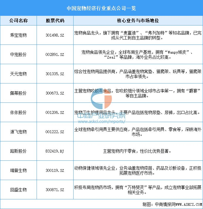 6.宠物经济重点公司一览