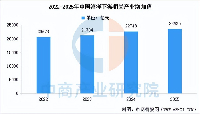 海洋下游相关产业是连接生产与消费的关键环节,在推动涉海产品流通、再加工及经营服务中承担着价值实现的重要职能。中商产业研究院发布的《2025-2030年中国海洋经济产业深度研究及发展前景投资预测分析报告》显示,2025年全国海洋下游相关产业增加值23625亿元,比上年增长3.9%,持续为海洋经济全产业链畅通循环提供有力支撑。