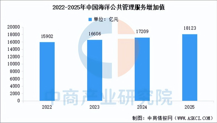 海洋公共管理服务是保障海洋经济活动有序开展、维护海洋生态环境、提供基础技术支撑的重要领域,其稳步增长体现了国家对海洋治理体系和治理能力现代化的持续投入。中商产业研究院发布的《2025-2030年中国海洋经济产业深度研究及发展前景投资预测分析报告》显示,2025年全国海洋公共管理服务增加值18123亿元,比上年增长5.3%,海洋公共服务保障能力不断增强。