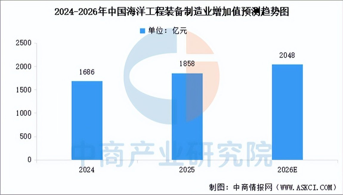 我国海洋工程装备制造市场加速复苏,中商产业研究院发布的《2025-2030年中国海洋工程装备行业深度分析及发展趋势研究预测报告》显示,2025年中国海洋工程装备制造业全年实现增加值1858亿元,比上年增长10.2%。中商产业研究院分析师预测,2026年中国海洋工程装备制造业增加值将达到2048亿元。