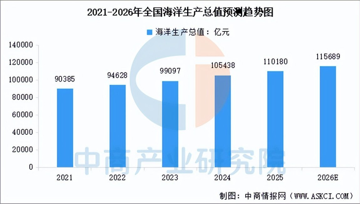 我国海洋经济实力不断增强,中商产业研究院发布的《2025-2030年中国海洋经济产业深度研究及发展前景投资预测分析报告》显示,2025年全国海洋生产总值110180亿元,占国内生产总值比重为7.9%。中商产业研究院分析师预测,2026年全国海洋生产总值将达115689亿元。