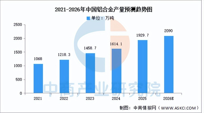 铝合金因其轻质高强、耐腐蚀等特性,在海洋工程中的应用日益广泛,产量快速增长。中商产业研究院发布的《2025-2030年中国铝合金行业深度分析及发展趋势研究预测报告》显示,2025年中国铝合金产量达1929.7万吨,同比增长15.8%。中商产业研究院分析师预测,2026年中国铝合金产量有望超过2000万吨。