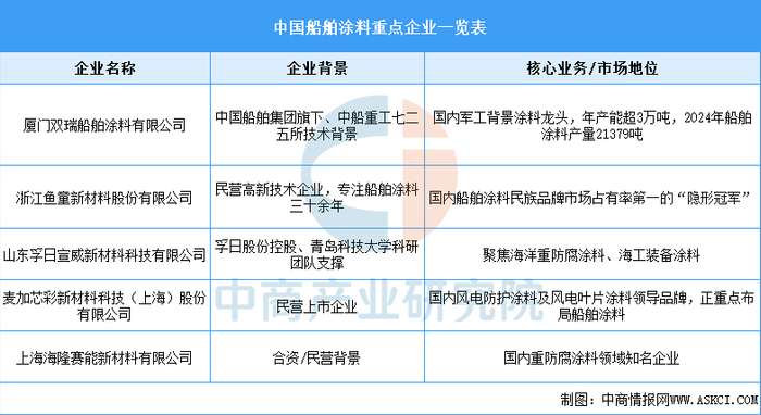 目前中国船舶涂料市场仍由外资巨头主导,佐敦、海虹老人、中涂化工、阿克苏诺贝尔等企业占据85%以上的高端市场份额。以厦门双瑞、鱼童、孚日宣威、麦加芯彩为代表的国产品牌正加速追赶,在技术认证、国家战略项目应用等方面取得突破,国产替代空间广阔。