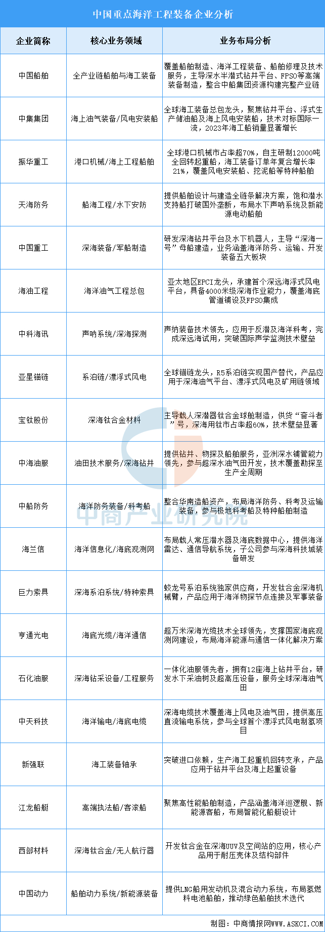 海洋工程装备行业头部集中效应显著,中集集团在深水半潜式钻井平台领域占据70%以上的市场份额,振华重工是全球海上施工装备龙头,中国船舶、中国重工在FPSO及高端海工装备领域处于领先地位。