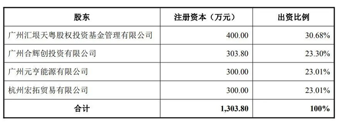 广州汇垠天粤持股30.68%,广州合辉创持股23.30%,杭州宏拓与广州元亨能源各持股23.01%,且各股东间无一致行动安排。