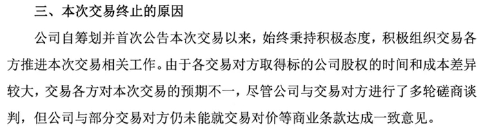 双成药业在披露重组终止原因时表示,公司与部分交易对方未能就交易对价等商业条款达成一致意见。