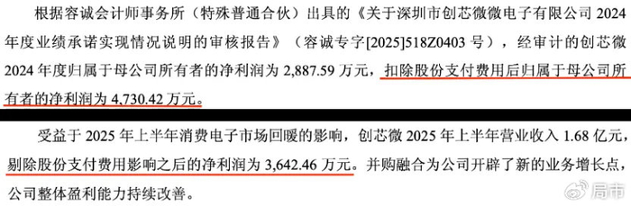 根据业绩承诺,创芯微应在2024年-2026年三年期间实现累计不低于2.2亿元归母净利润(扣除股份支付费用影响)。