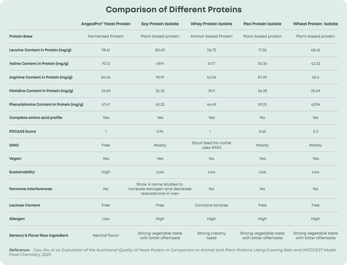 这是一种纯素蛋白,由酿酒酵母发酵而来,蛋白含量高达80%且含全部9种必需氨基酸,经消化率优于大豆蛋白等植物蛋白,与乳清蛋白相当。