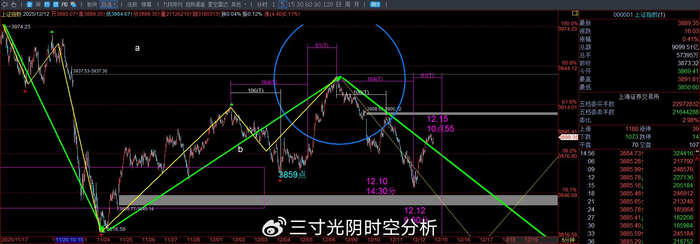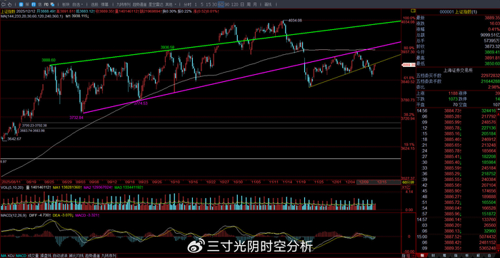 另外从小周期涨跌节奏上看这波自12日开始的反弹有可能于明天早上11点附近结束,其后也进入到小的下跌周期中,所以重点观察明天早上11点之后的走势对短期涨跌节奏以及力度的把控有重要意义。