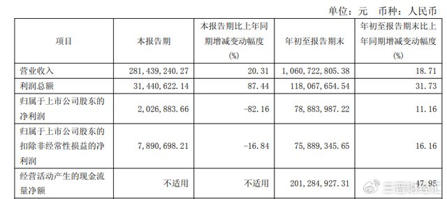此外,公司经营活动产生的现金流量净额也大幅改善,同比增长47.95%,达到2.01亿元。