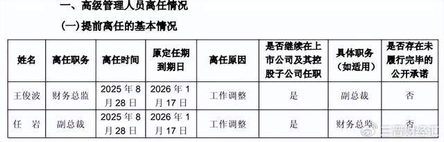 值得关注的是,这是王俊波三个月内第二次辞去核心高管职务——此前在8月28日,他刚刚卸任财务总监一职。