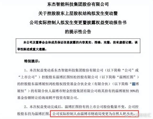 8月26日,东杰智能公告,公司实控人将由淄博市财政局变更为自然人韩永光。10月24日,股权变更完成,实控人变更正式落地。
