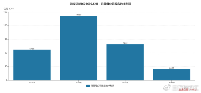 2023至2024年,潞安环能业绩下滑,实现营收分别为431.37亿元、358.5亿元;归母净利润分别为79.22亿元、24.5亿元。