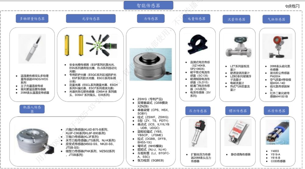 传感器是公司的起家业务,经过多年发展,目前公司已涉足称重、光电、水质、光纤测温、光幕、气体、位移、电量、温湿度压力、流量、3D 视觉、激光测距、振动传感器、机器人多维力传感器等近二十种传感器。