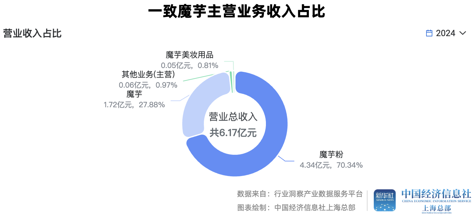 中经社行业洞察产业数据服务平台(简称“行业洞察系统”)显示,2024年一致魔芋主营收入几乎全部来自于魔芋及相关产品。